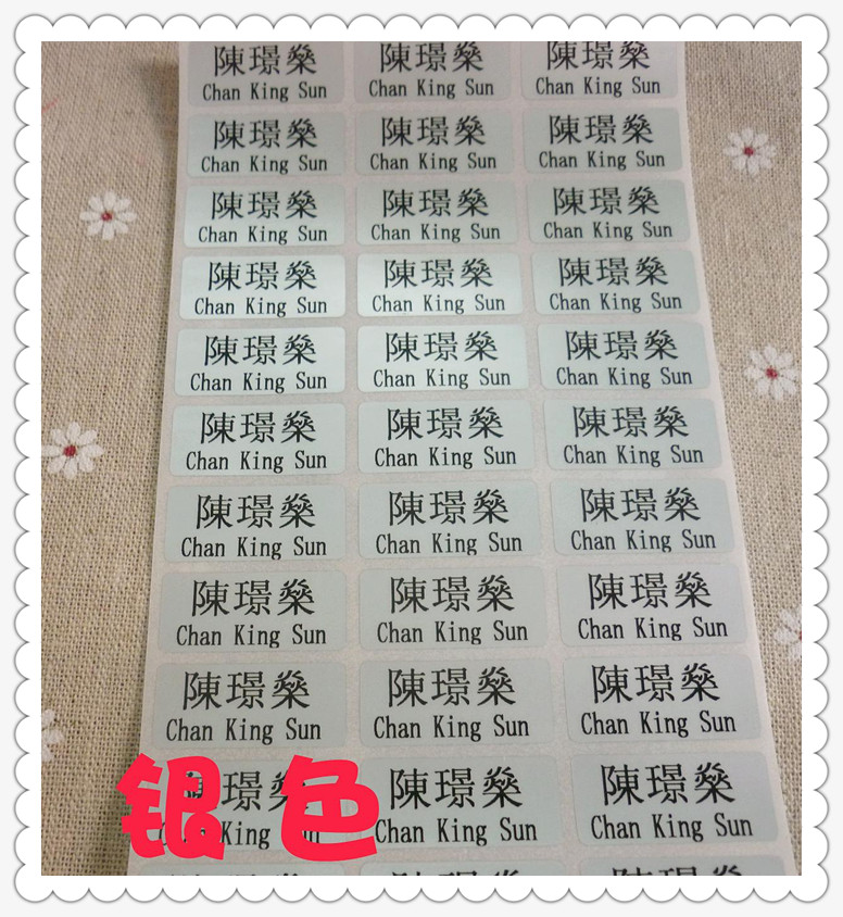 Silver name stickers stationery water glass sticker label waterproof and scratch-resistant washable cartoon name stickers