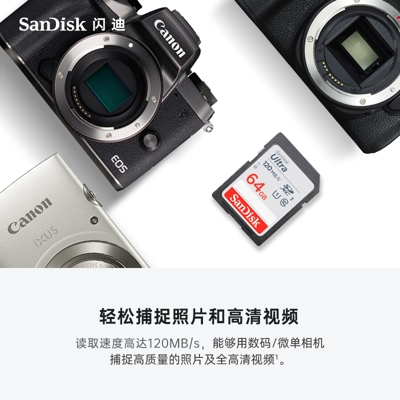 SanDisk SD Card 64g memory card class10 high speed SDXC Canon Nikon Sony SLR camera memory card 120M s Micro Single Camera Digital Camera Memory Truck S