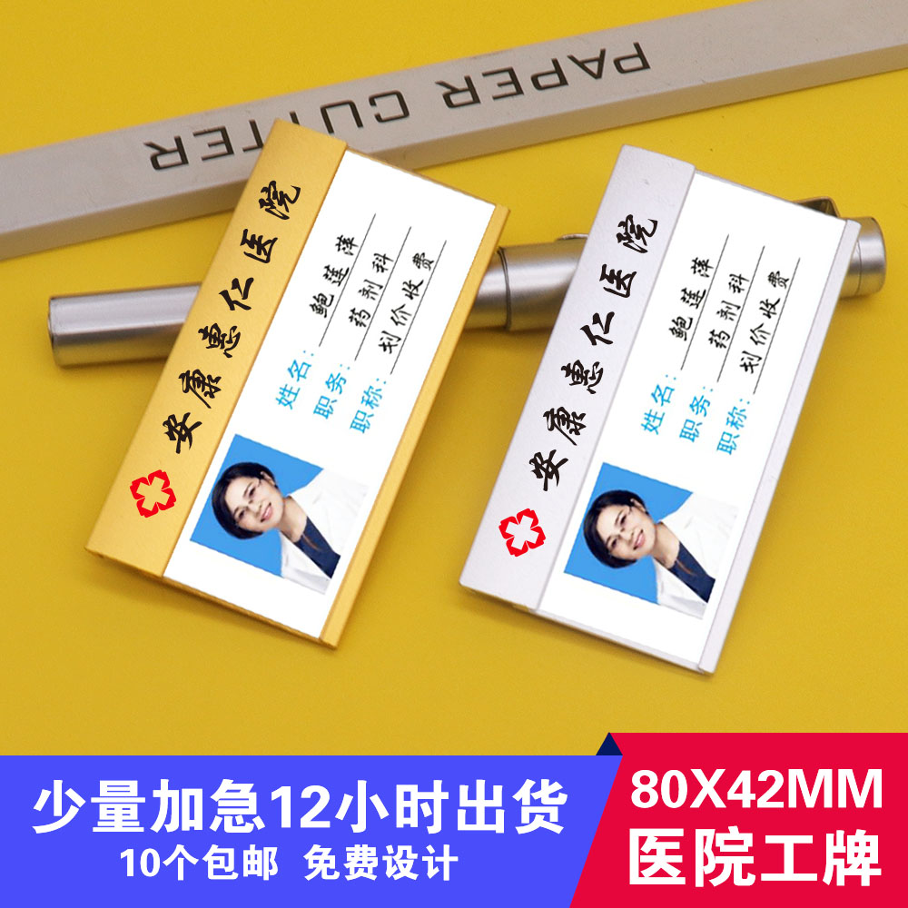 Hospital badge custom-made high-end beauty doctor badge can be replaced pharmacy shop license plate aluminum alloy production