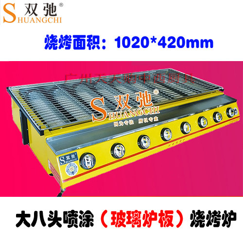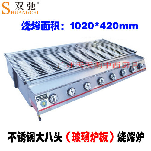 Double-ride big eight-head barbecue grill with glass sheet steel gas smoke-free barbecue machine Commercial and environmentally friendly baked raw oyster stove