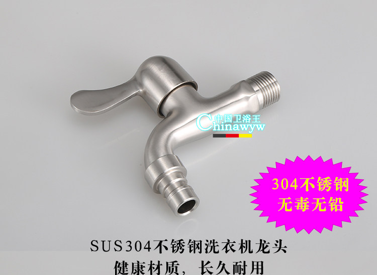 SUS304 stainless steel washing machine faucet mop pool single cold fast boiling water nozzle 4 points stainless steel in-wall faucet
