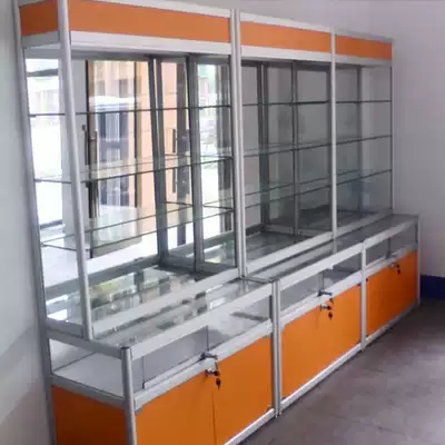 Jewelry counter Boutique tempered glass cabinet L-shaped cosmetics showcase Boutique titanium alloy computer showcase showcase