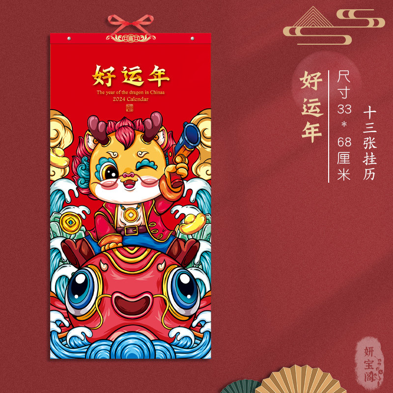 2024 Hang Calendar New Chinese Wholesale 13 Zhang January A Delicate Thickened Home Fu Character Dragon Year Lunar Calendar Home Enterprise New Year Business Gift Advertising Print Special Edition Custom Made-Taobao