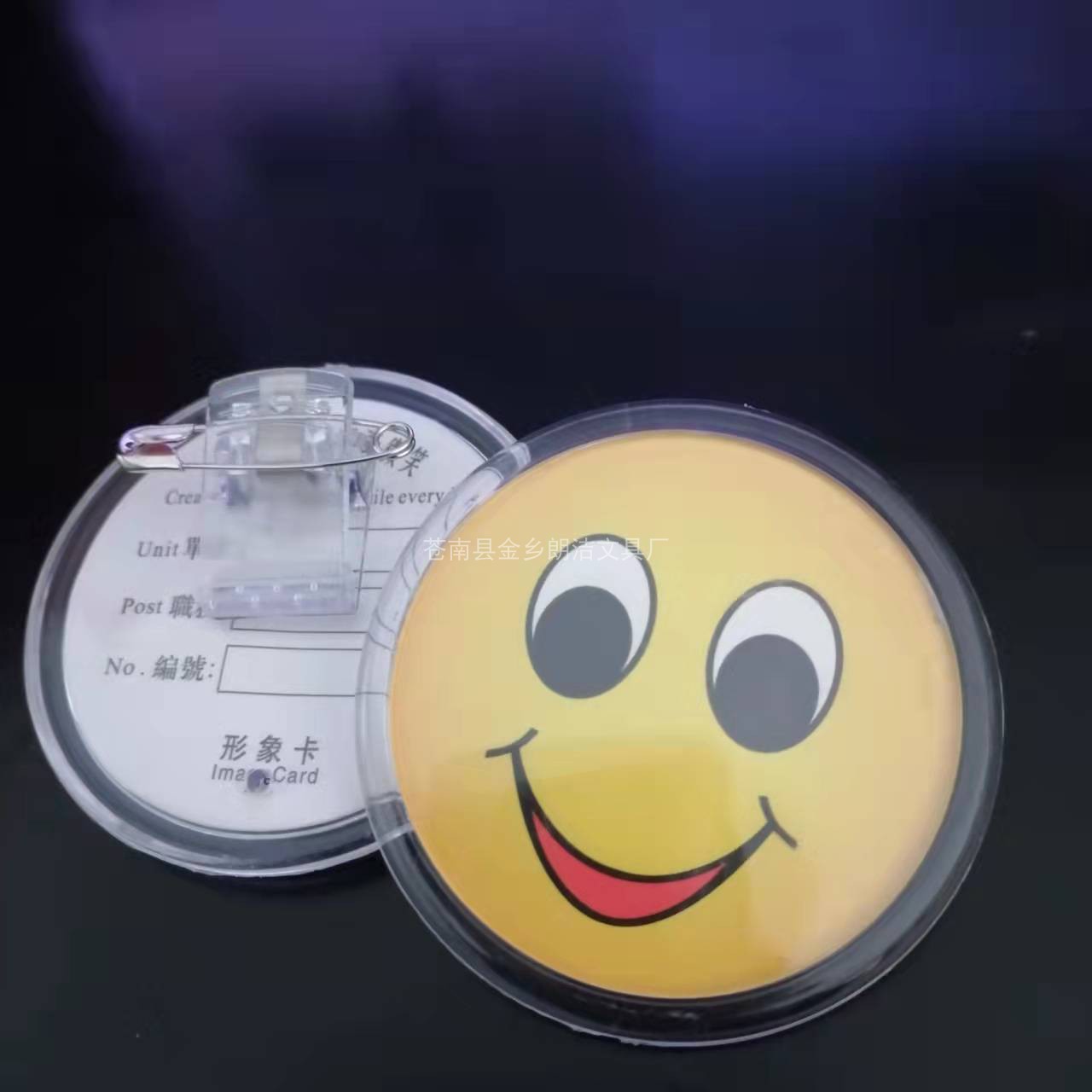Manufacturer spot round smiley face chest badge with smile chest sign 3 5cm inner core replaceable service employee card school badge