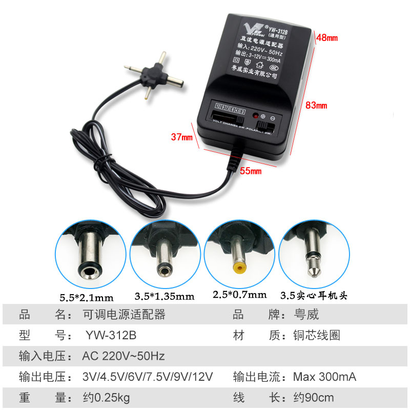 AC220V to DC3-12V adjustable transformer Walkman radio 6V repeater power adapter 300MA