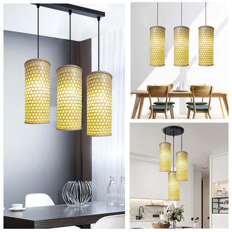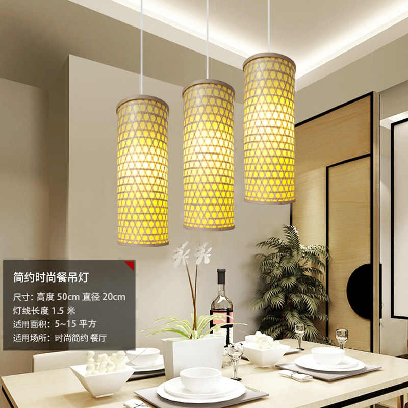 Chinese Nordic modern minimalist bamboo woven cylindrical long cylinder lantern dining room Tea building Dining Room Aisle Suction Top Chandelia LED