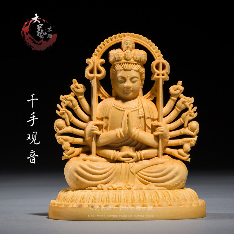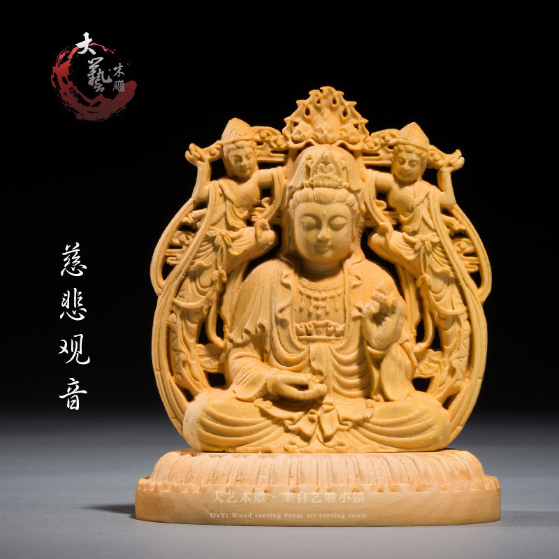 Yellow Poplar Wood Carving Boutique Engraving Craft Gifts Swing Accessories of the Buddha Guanyin Mall the Caixity Treasure Green Solid Wood Car Pendulum