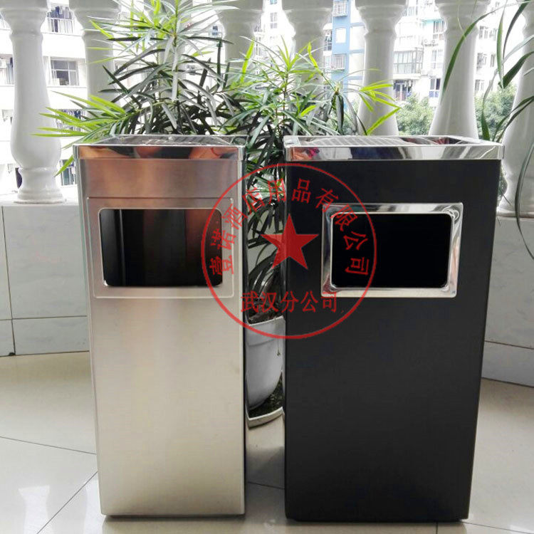 Wuhan stainless steel square trash can Lige trash can elevator mouth trash can cigarette ash bucket stainless steel trash can