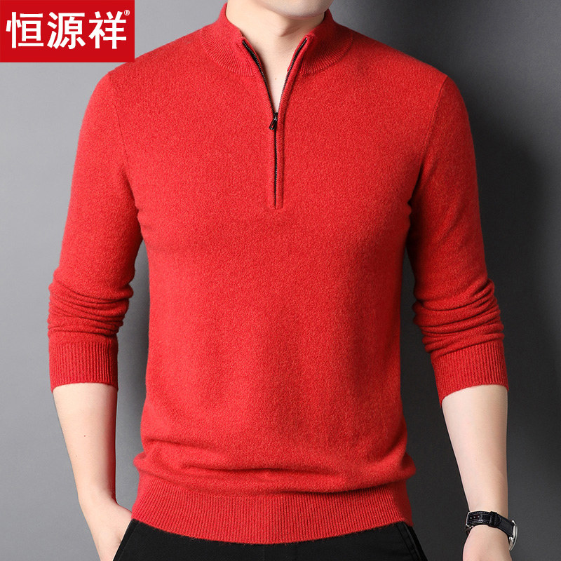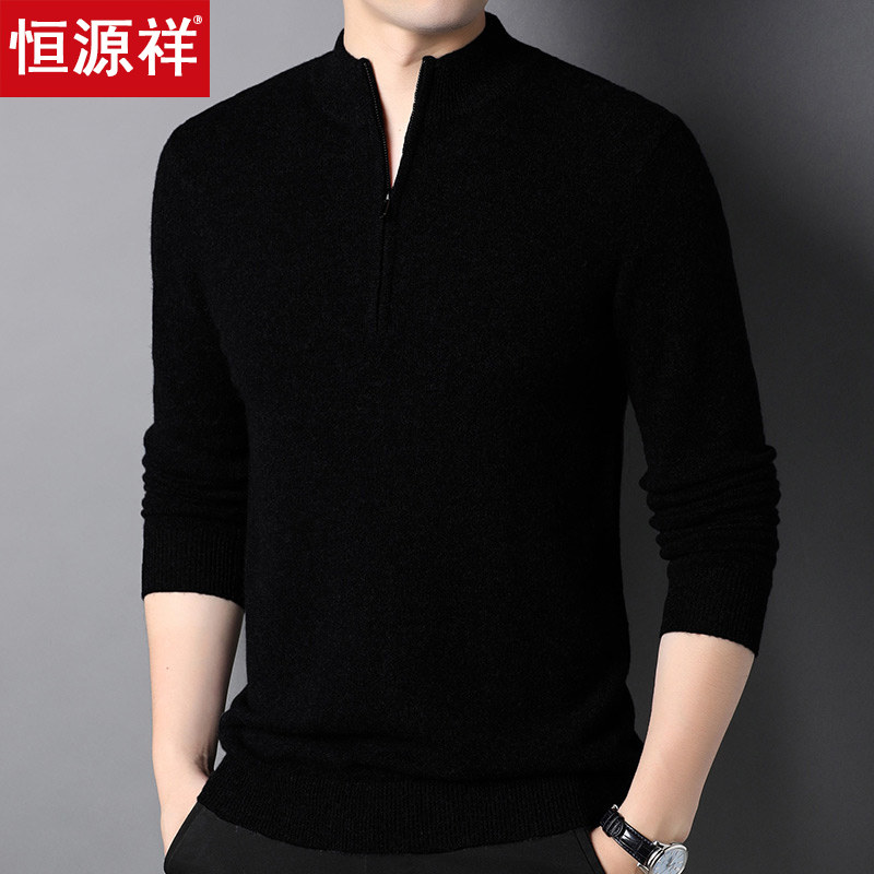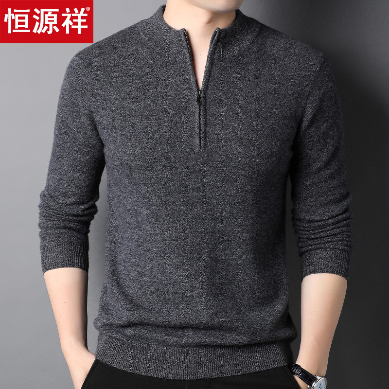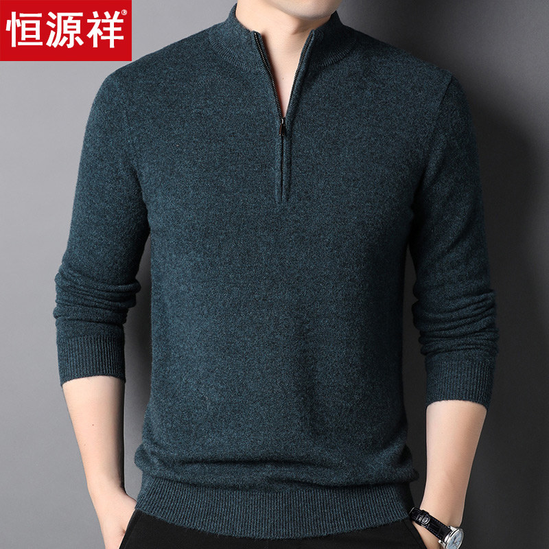 Hengyuanxiang winter men's woolen sweater middle-aged half-high zipper collar solid color sweater thickened warm all wool bottoming shirt