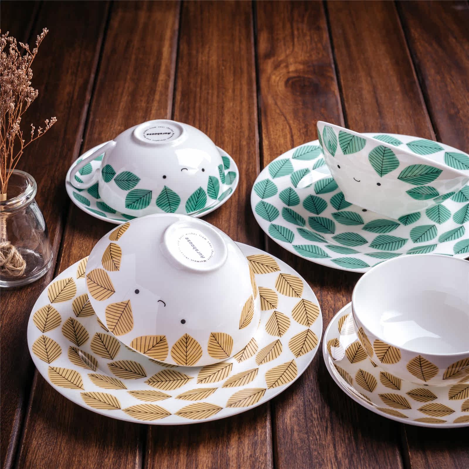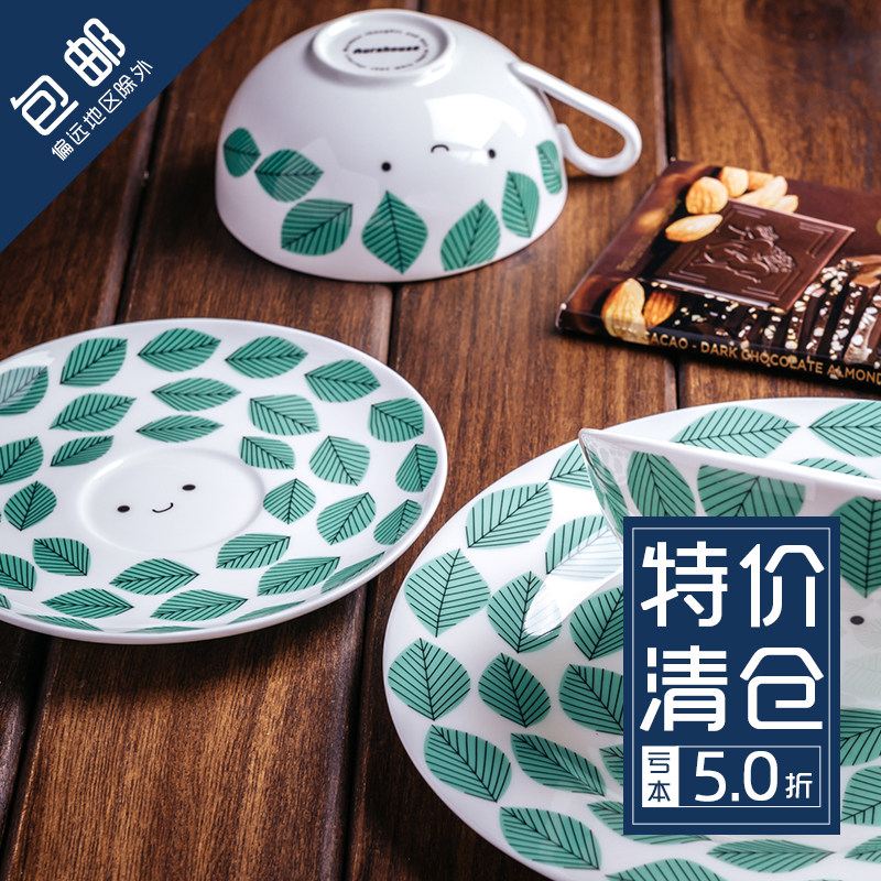 Green coffee cup green Japanese bowl green flat yellow Japanese cup yellow dish