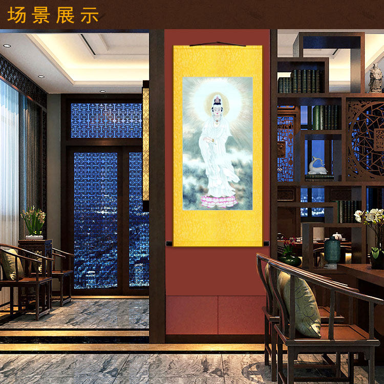 White Avalokitesvara Portrait Hanging Painting Avalokitesvara Bodhisattva Scroll Painting Buddha Hall Decoration Painting Silk Painting Customization