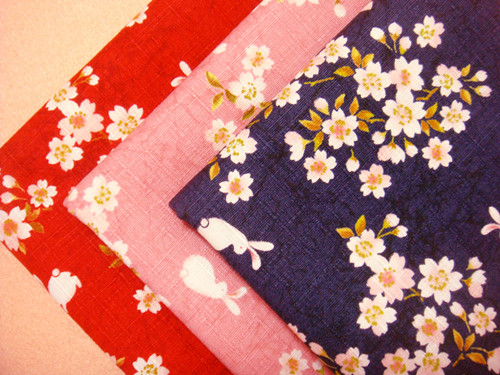 2 strips of Japanese Pink Red Flowers Interred Rabbit Ladies Bamboo Festival All-cotton Thickened Japan and Wind Phanda Phanda