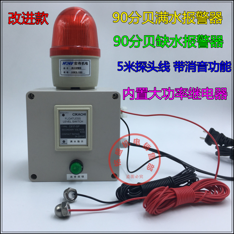 sound 90 decibels full water alarm sound 90 dB water shortage alarm 105 decibels full water alarm 105 dB water shortage alarm 90 dB full water alarm with mounting hole 90 dB water shortage alarm