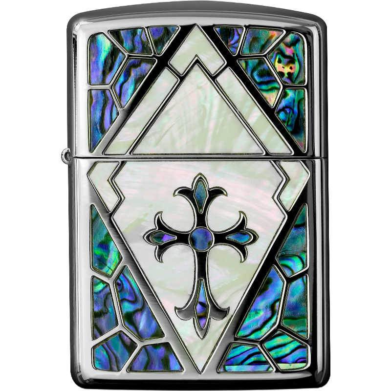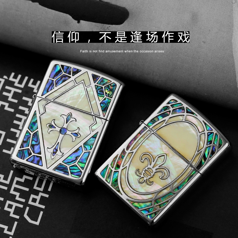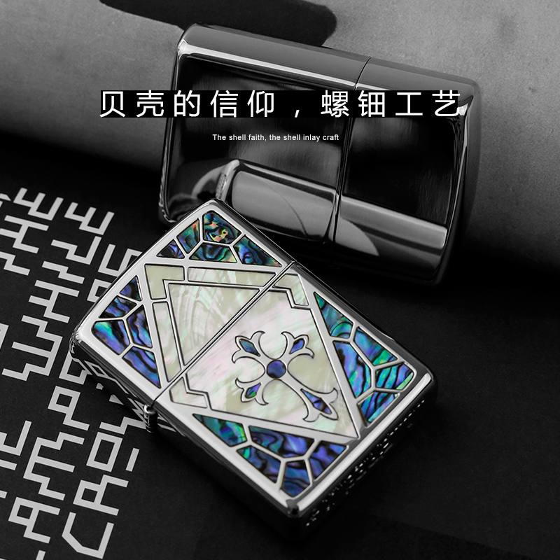 Genuine zippo windproof kerosene lighter natural shell cross hand inlaid armor machine men's gift