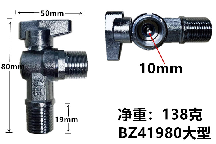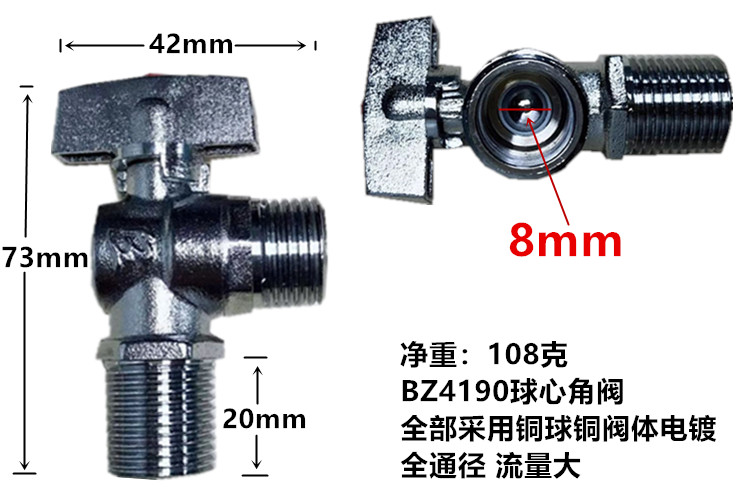 Bozheng valve BZ4190 full bore large flow ball heart angle valve brass ball heart angle valve gas water heater angle
