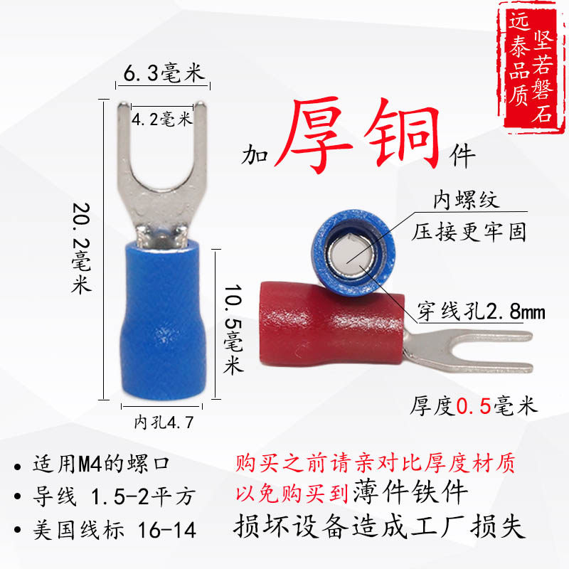 Cold-pressed terminal Fork type pre-insulated terminal SV2-4 Fork type Y type U type SV2-4S terminal block 1000