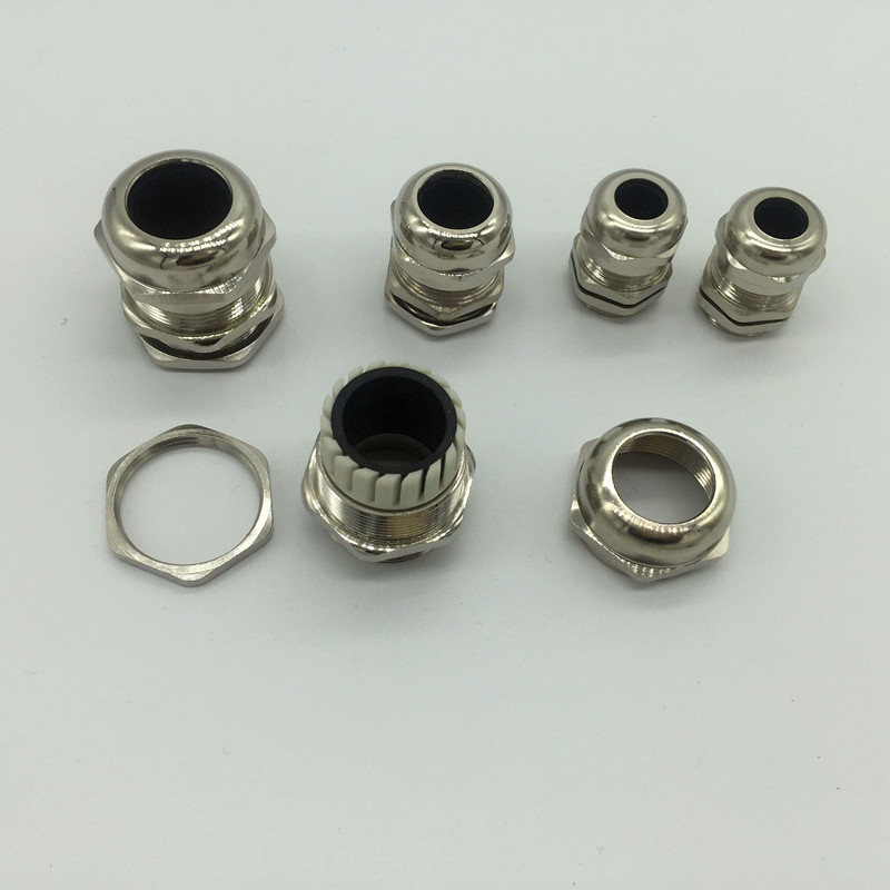 Metal brass nickel-plated cable waterproof joint sealed fixed head screw gland head cable head stuffing box PG7-63