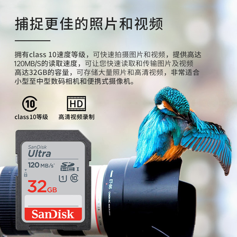 SanDisksd card 32g memory class10 high speed micro SLR camera mirrorless camera memory card 32g memory card 120m sec