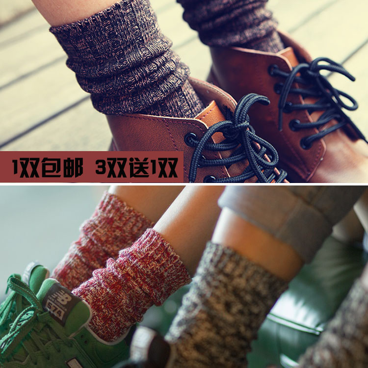 1 pair thick line thick mixed color cotton socks Variegated coarse knitted color wool bubble socks women's Korean style socks