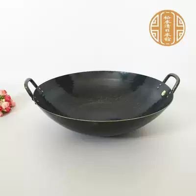 Japan Yamada Industrial Institute handmade extension binaural pot Iron pot Handmade pot round bottom wok fried scoop Chinese pot