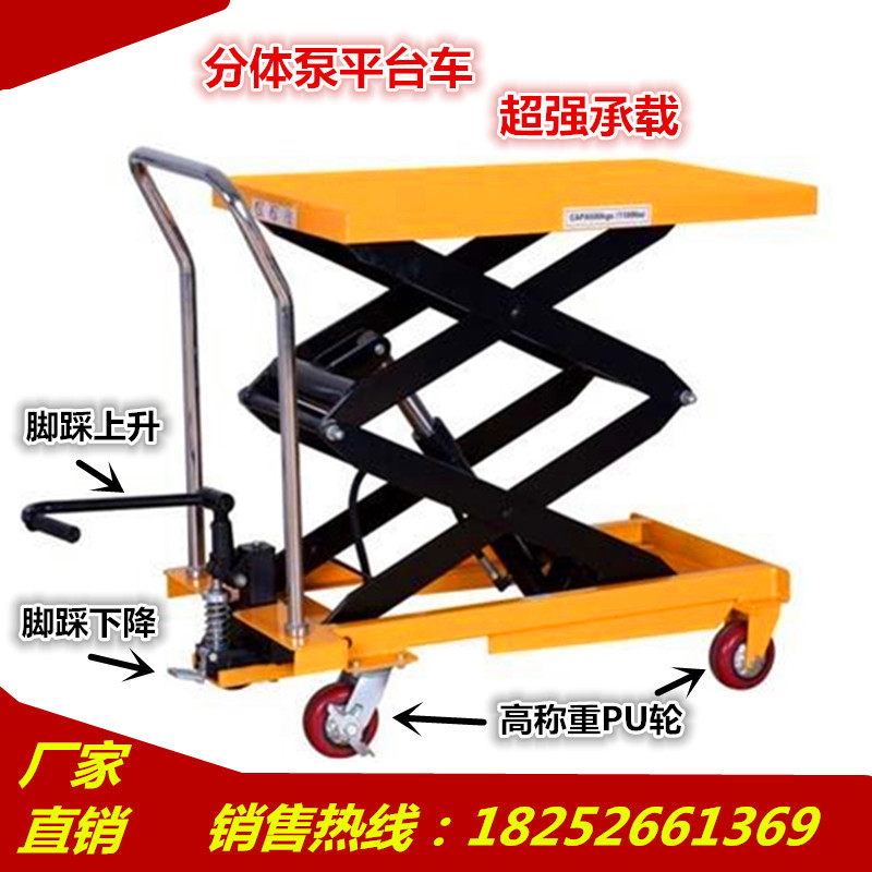 Manual hydraulic platform car hydraulic lifting platform trolley lifting work platform flat car mold logistics table