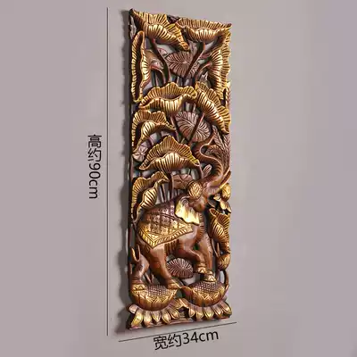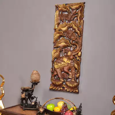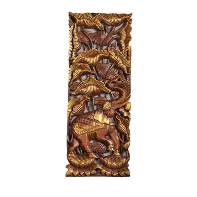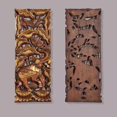 Thai handmade carved board teak small elephant lotus painting gold wood carving board wood carving partition screen background flower grid
