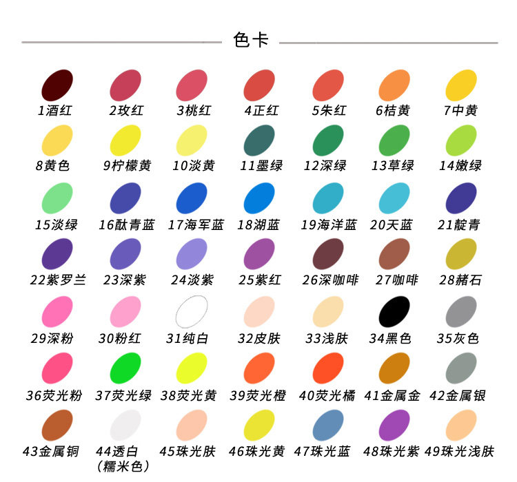 White yellow red wine red color gold silver color grey black light brown light yellow ink green violet orange color lemon yellow dark purple pink sky blue rose red light purple red lake blue color fluorescent