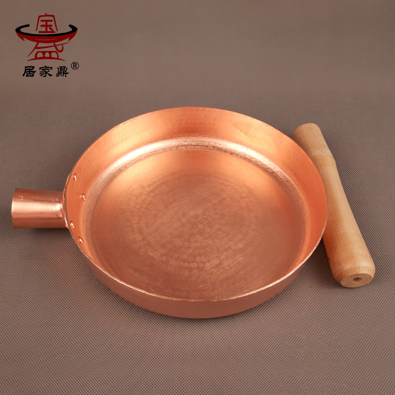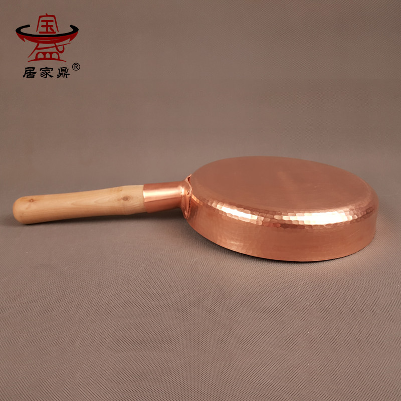 Pure handmade red copper flat bottom pot thickened type pancake pan not easy to stick pan frying pan pure red copper
