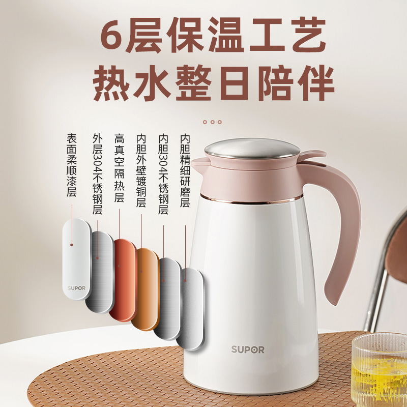 Supor heat insulated kettle 304 stainless steel Vacuum Thermos kettle household hot water bottle large capacity portable