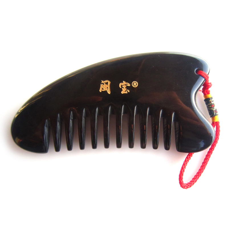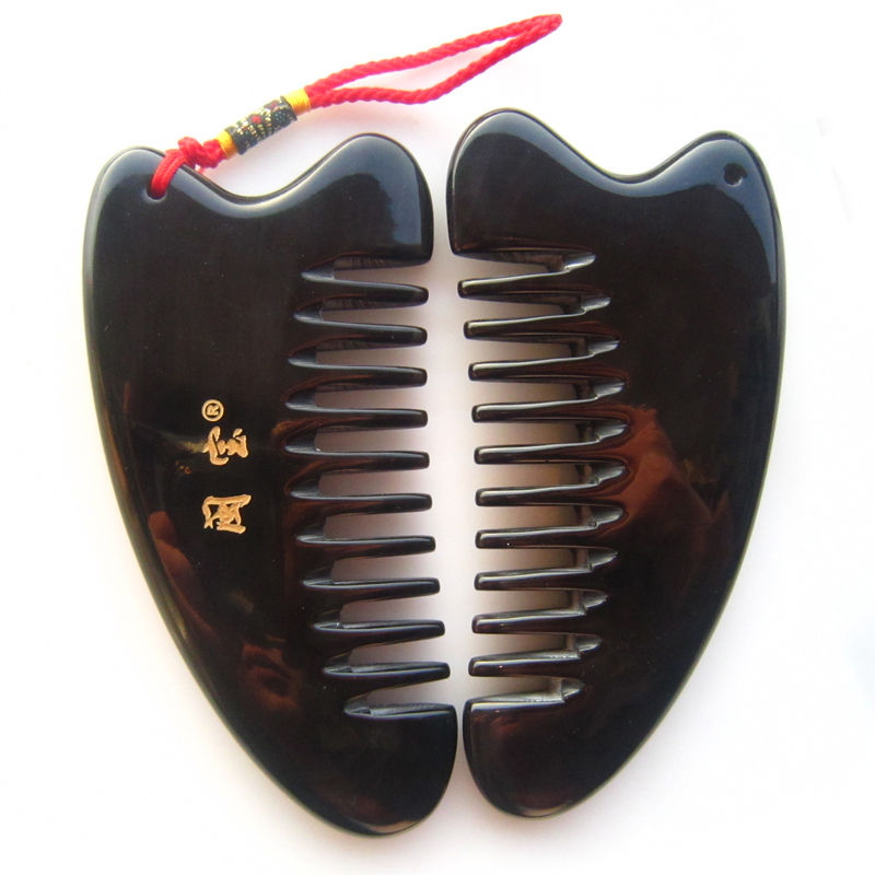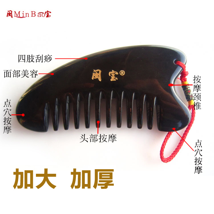 Buffalo horn comb Head massage Face Facial beauty Whole body natural wide teeth scraping meridian comb Household lettering