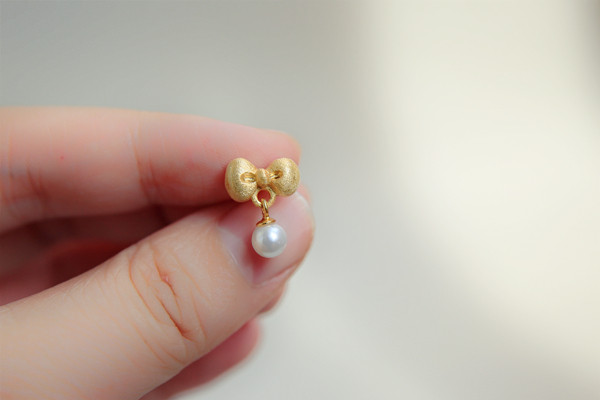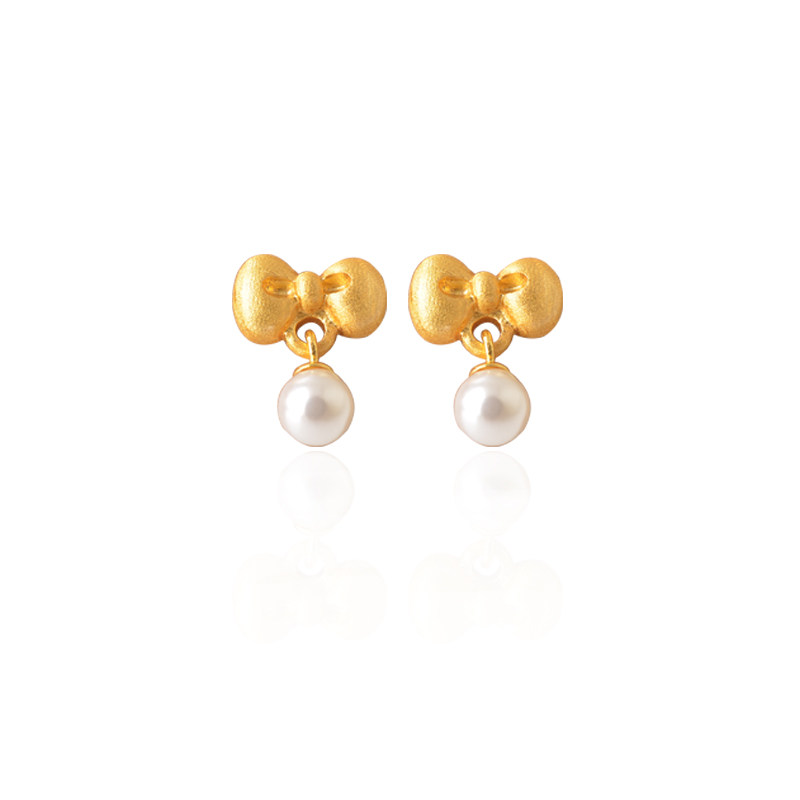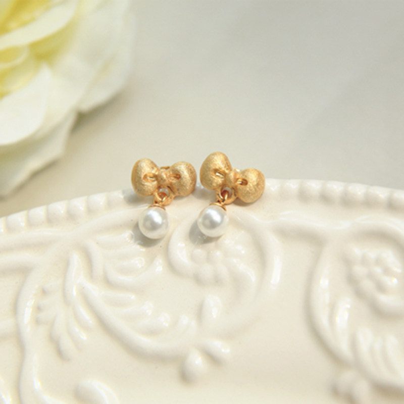 Silver Moto Home Original Bow Tie s925 Pure Silver Plated 24K Gold Natural Pearl Earrings Female Sweet Princess Wind Earrings