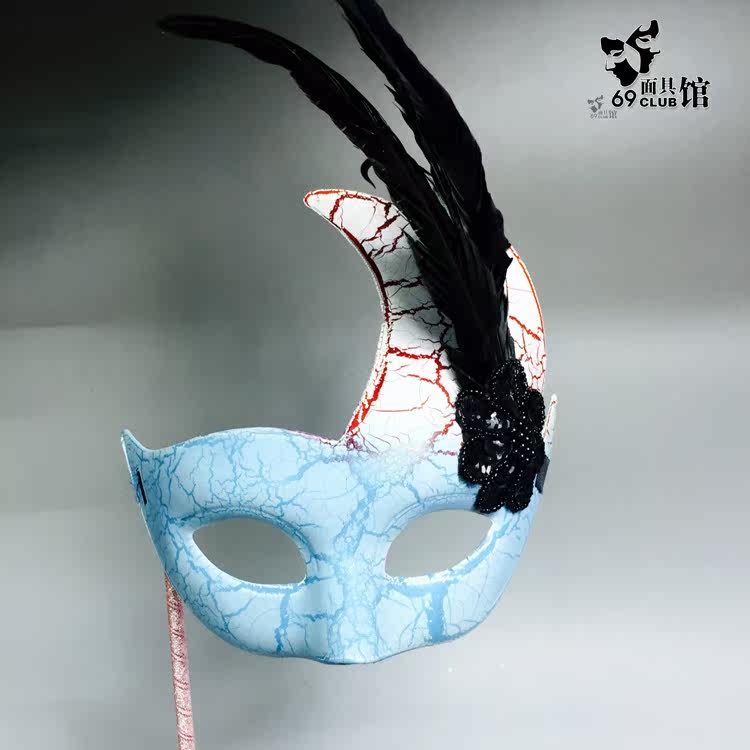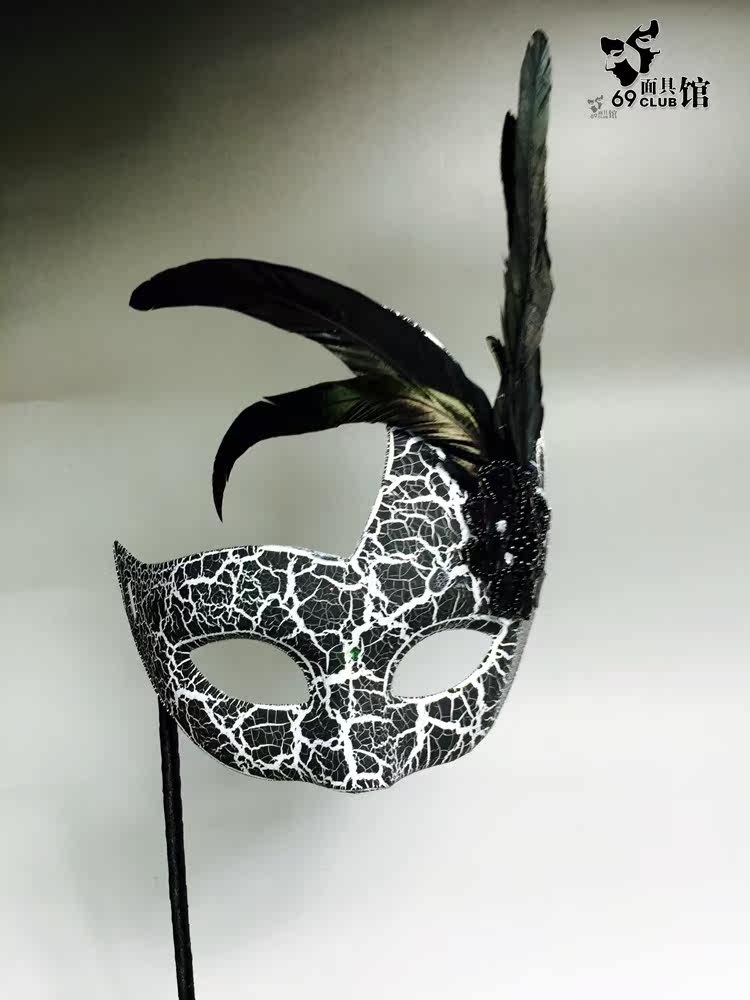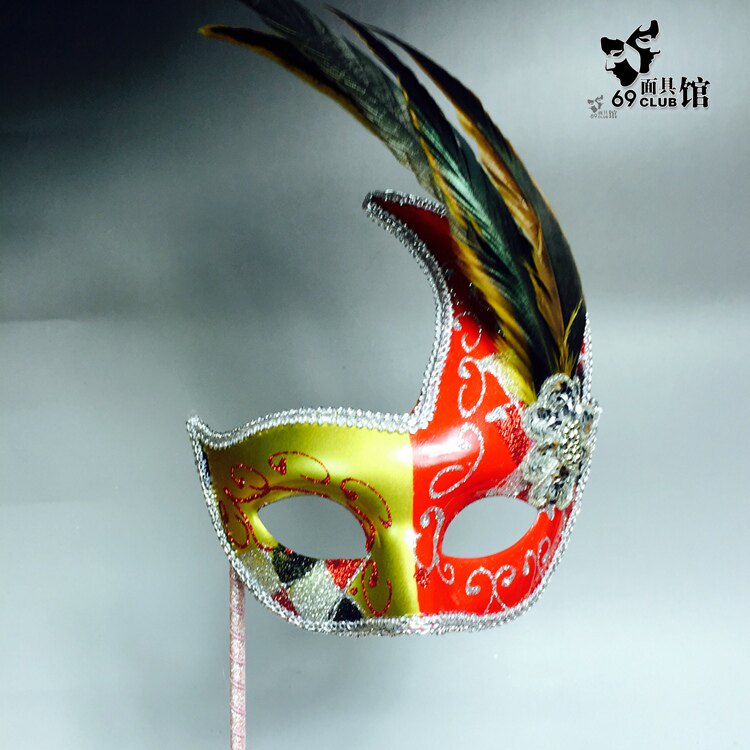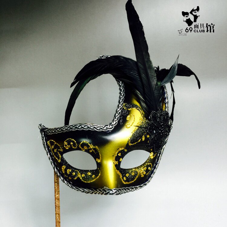Hand-held high-end cosplay gold curator Venice masquerade carnival full face handle men mask