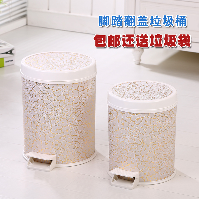 European-style kitchen trash can household foot-operated creative powder room living room bedroom large plastic trash can with lid
