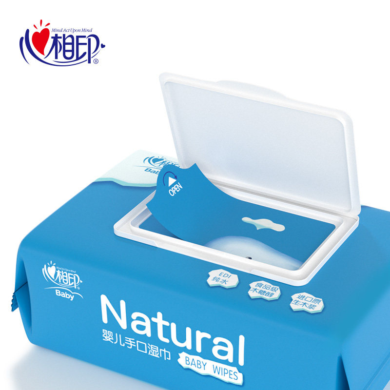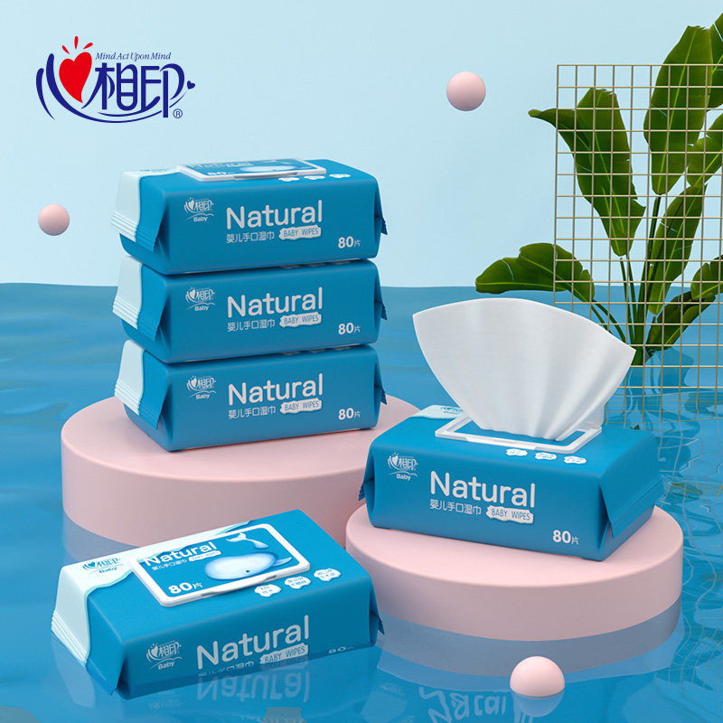 Heart print baby wipes Hand and mouth fart special newborn baby wipes with lid Removable 80 pumping 5 packs of the whole box