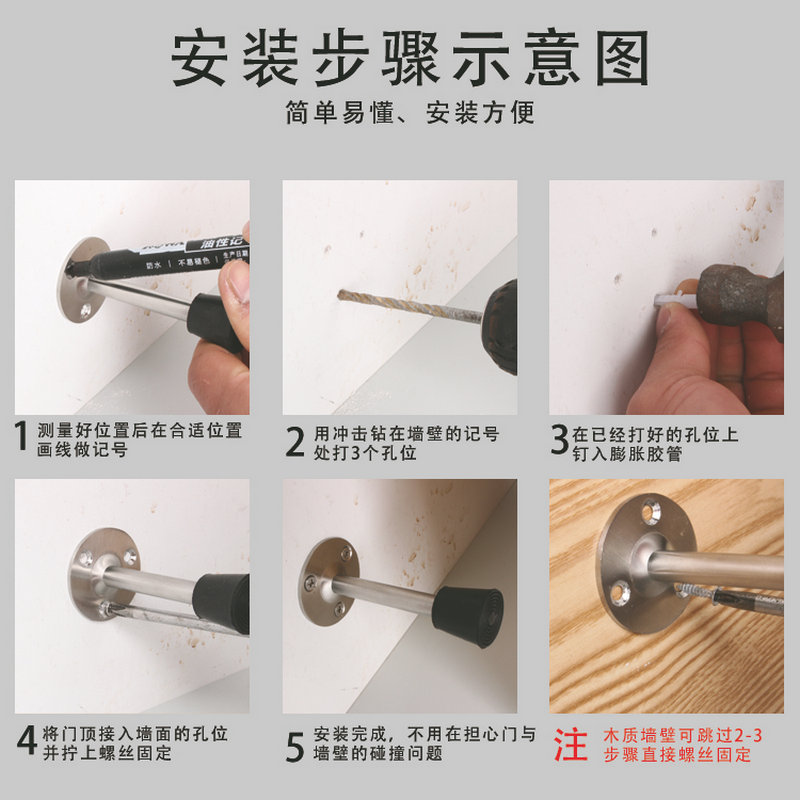 Extended stainless steel door top touch rubber door plug anti-collision anti-theft door door stop door touch bathroom door block door card