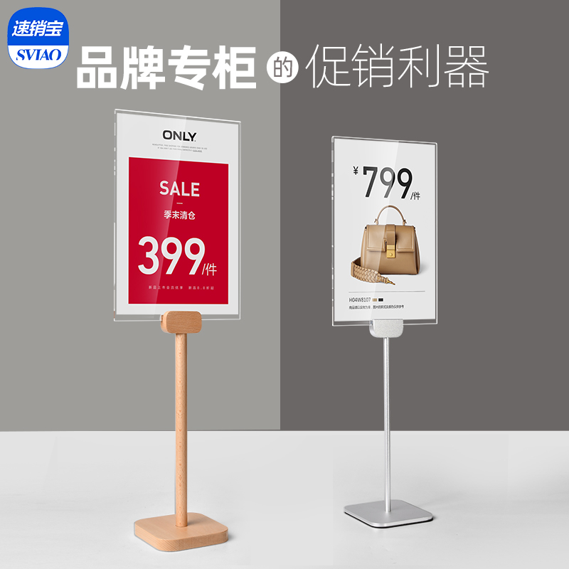 Speed Pin Treasure Price Display Card Acrylic Promotion Standing Cards a4 Bench Billboard Small Sign Metal Table Card Clothing Shop Special Price Tag Vertical Table Board Desktop Billboard Promotional Price Tag