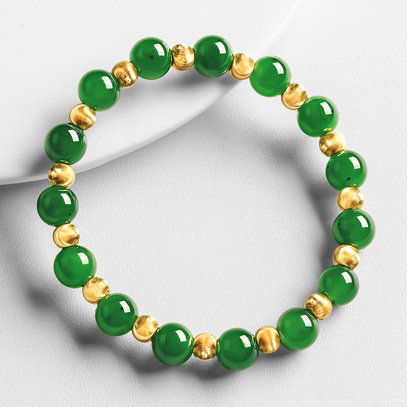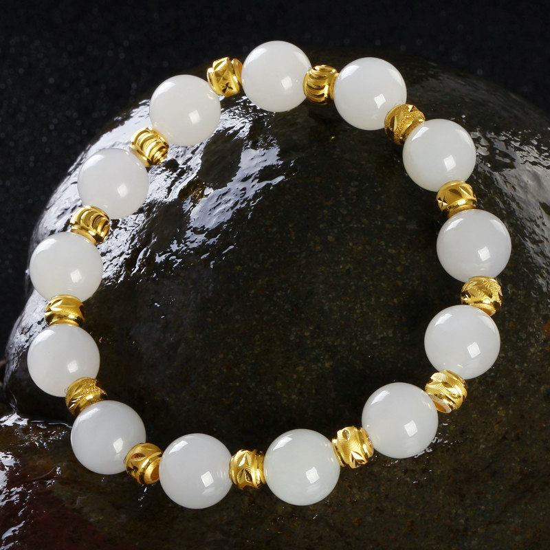 Beyu Zun Gold Hand Strings Foot Gold White Jade Transfer Beads Handmade Natural and Tian Yubi jade Handmaid's Jade Hand Condensed