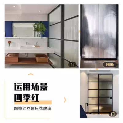 Four seasons Red art embossing craft glass extremely narrow frame partition screen doors and windows bathroom tempered glass customized