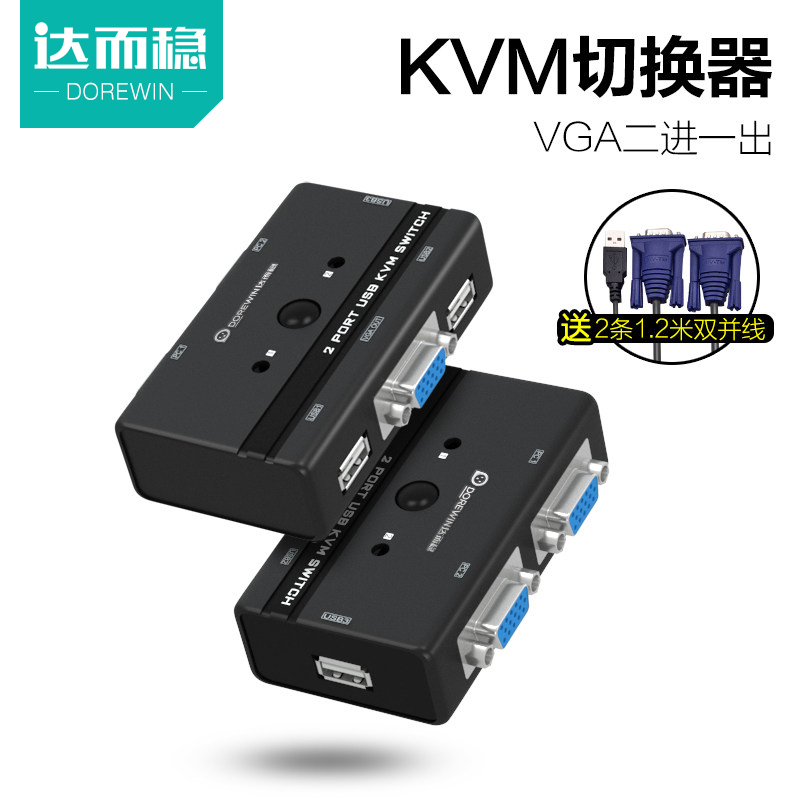 Darwen KVM switch, two-in-one-out screen cutter, 2-port vga keyboard mouse USB sharer, dual computer host, shared display, screen converter, monitoring video