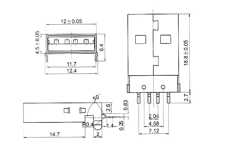 Pattern USB2 0 A Type USB socket welding plate data interface 4P sediment