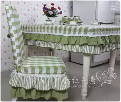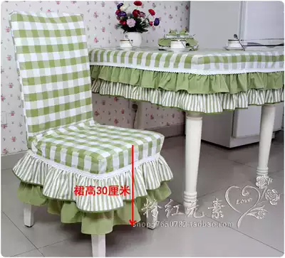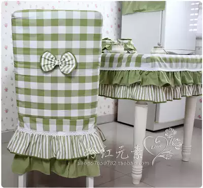 Green lattice pastoral one-piece chair cover cotton cushion chair cover dinner chair cover customized Korean chair cover
