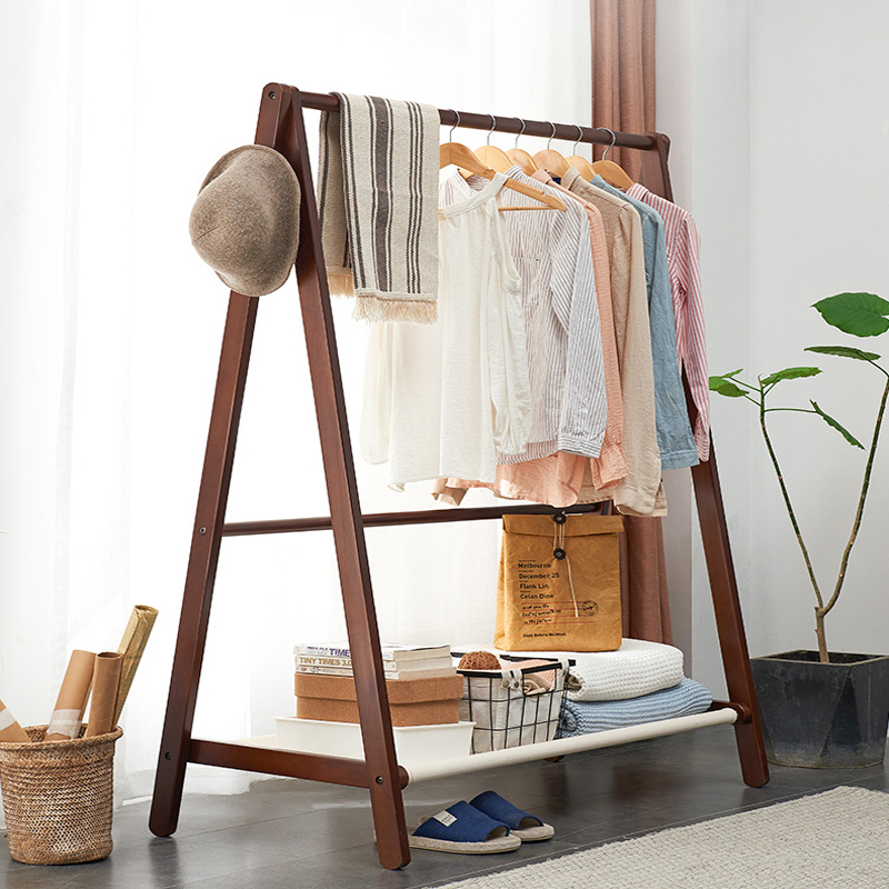 Home Yi solid wood coat rack Bedroom floor hanger Creative European wooden clothes rack hanger