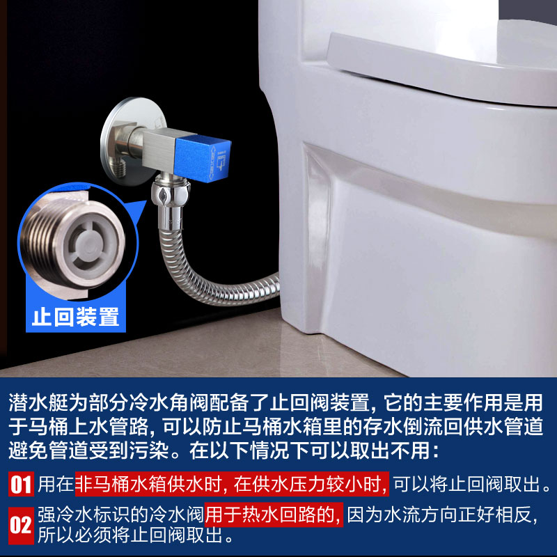 Submarine angle valve All copper triangle valve Hot and cold water household toilet anti-anti-water check water heater water valve switch
