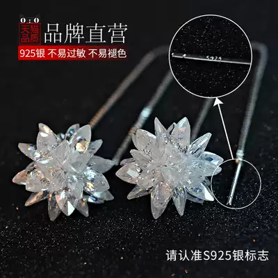 925 sterling silver ice flower ear refining female long version tassel snowflake crystal earrings silver earrings earrings earrings 2021 New Tide