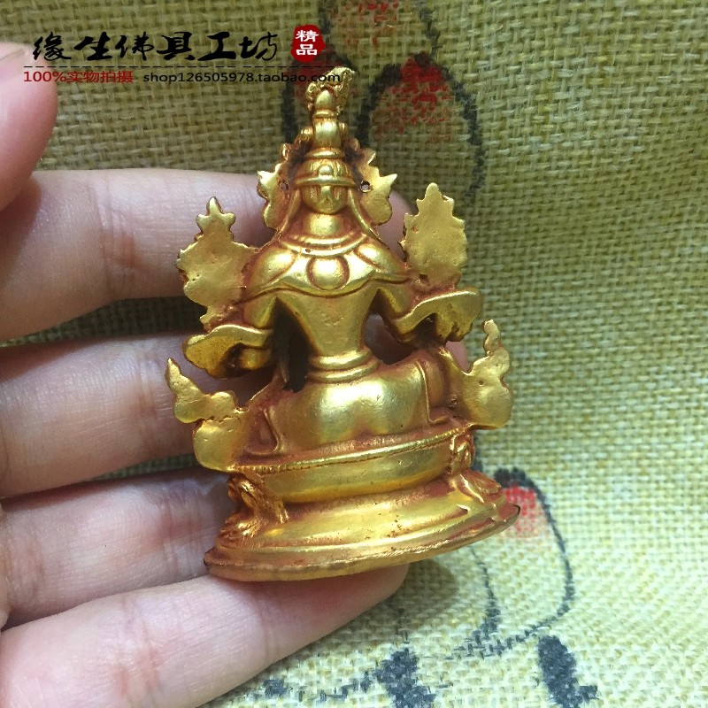 Buddhist Buddhist Buddha statue imported fine hand - made 5 5 cm full - gill gold - green mother