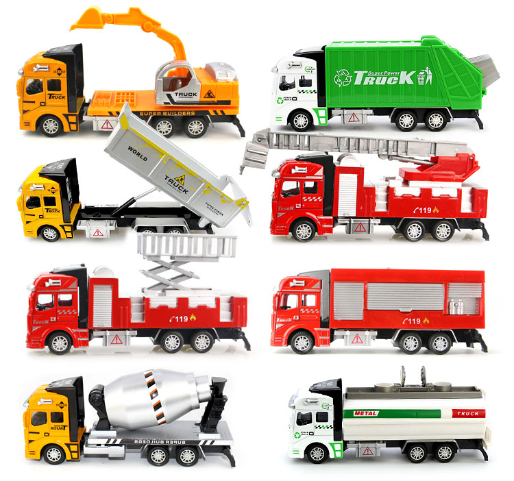 Alloy garbage truck-Green (main picture) alloy excavator alloy tipping truck alloy cement truck (three engineering vehicles) (three) fire truck alloy fire truck alloy ladder truck alloy lift truck