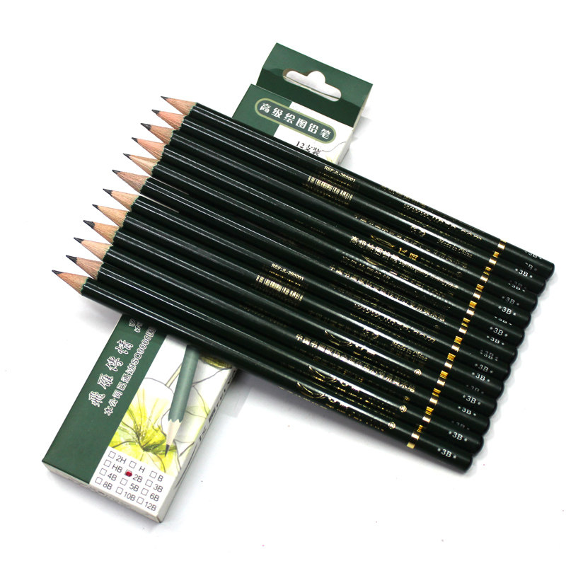 Flying Goose Drawing Pencil Green Pole Pencil Exam Drawing Sketching Pencil Carbon Ink All-in-one 14B Special 12B