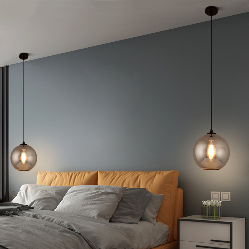 Nordic bedside chandeliers modern minimalist single-head glass chandeliers creative personality study bedroom bedside lamps