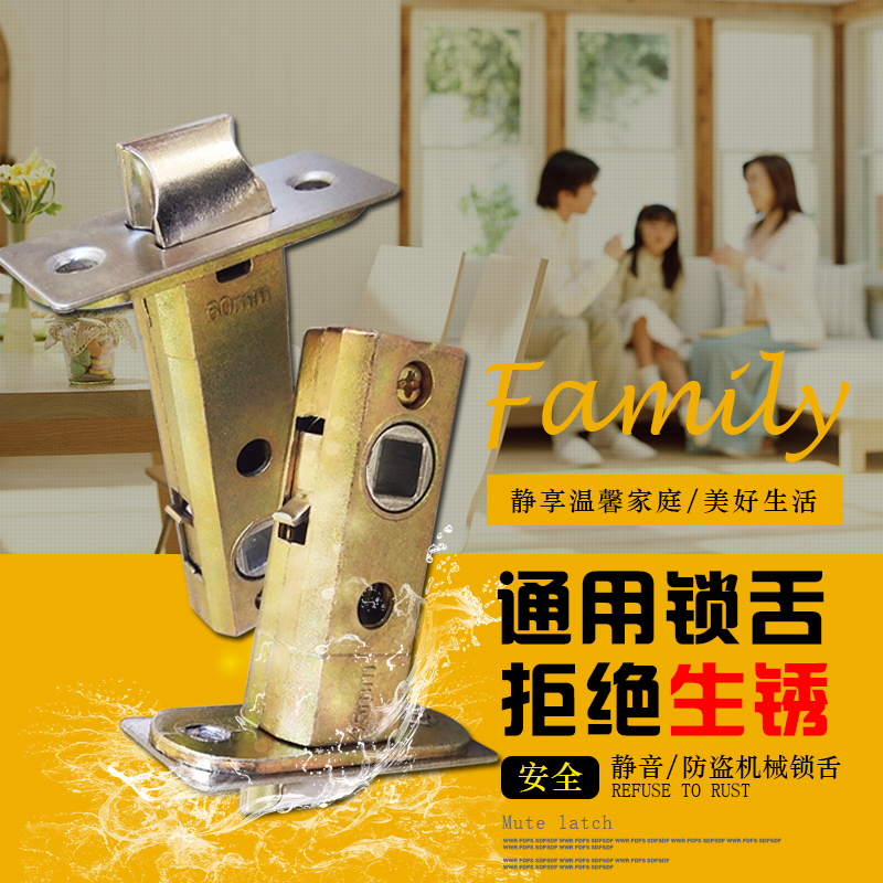 Mute single tongue three-bar lock bathroom door lock indoor bathroom lock handle single tongue toilet lock tongue toilet handle single