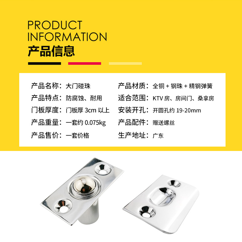 Adjustable door copper touch beads invisible door touch beads silver door top bead windproof locator KTV room door card touch